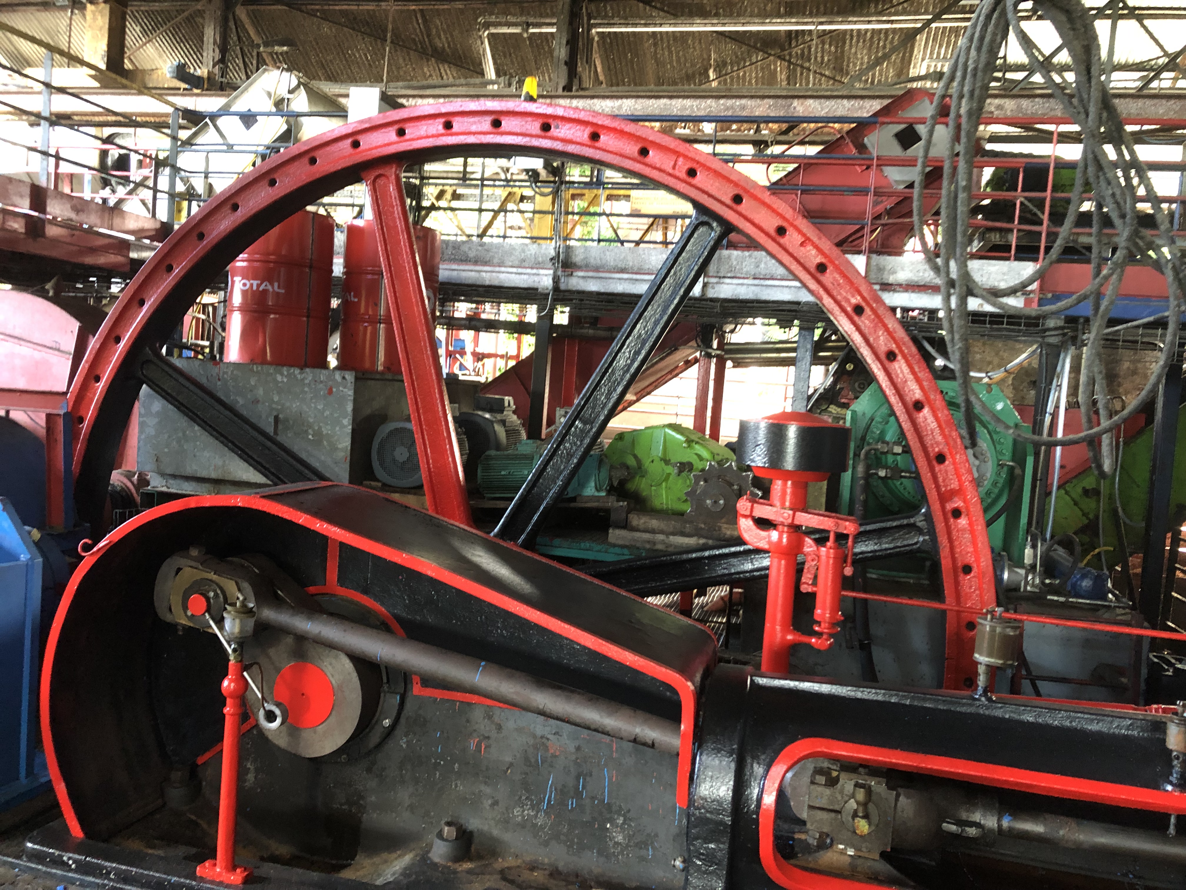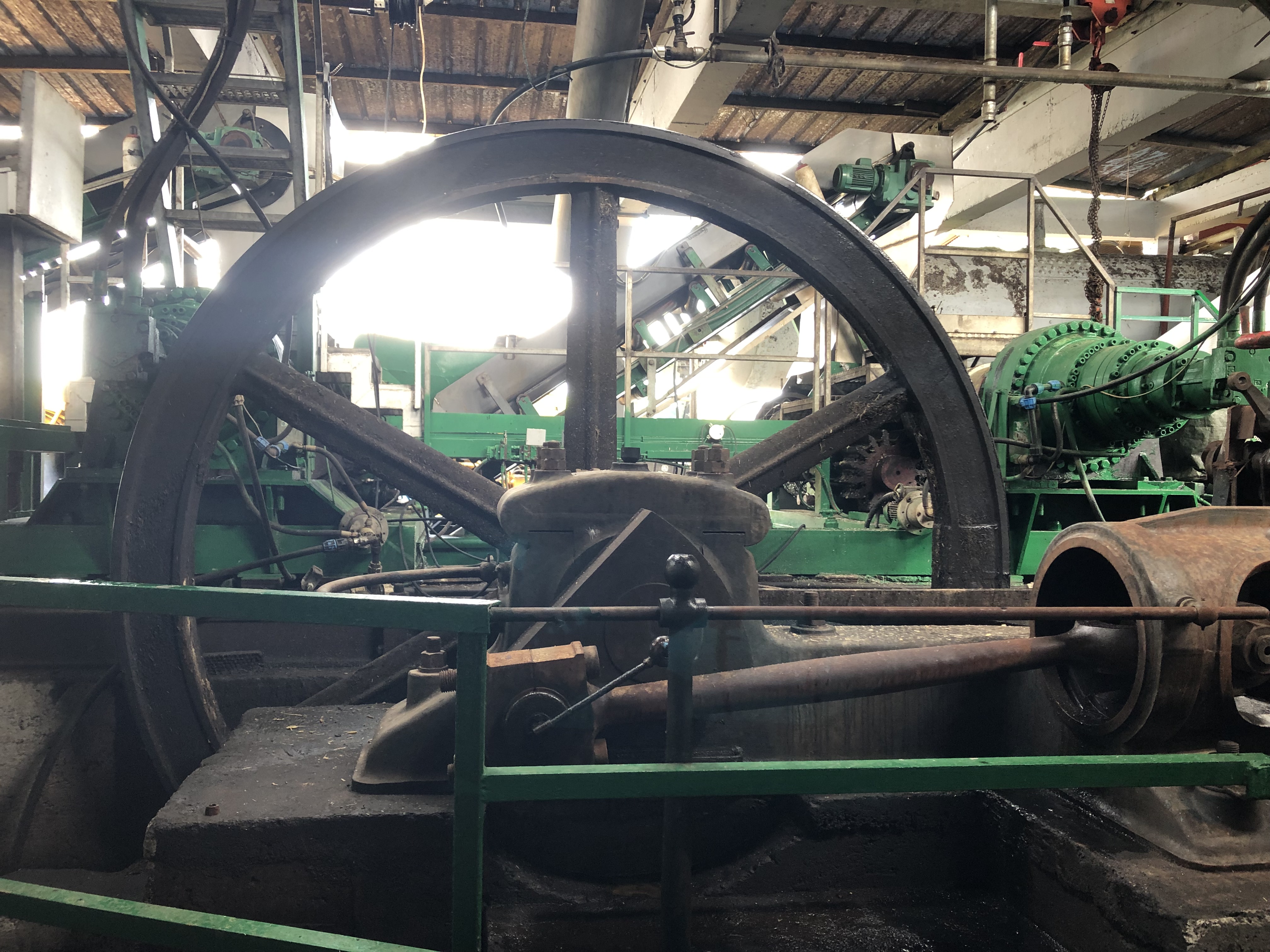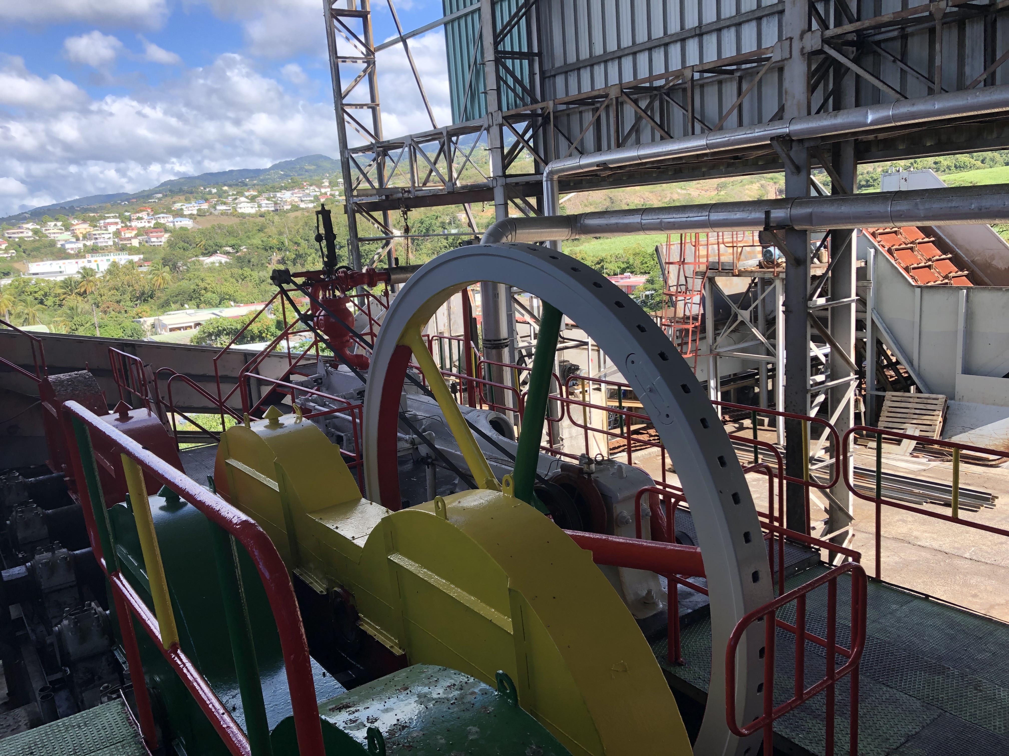La distilleria, come molti impianti ormai in Guadalupa, recupera completamente lo scarto ligneo e fibroso della canna da zucchero, la bagasse, per produrre energia e far funzionare la macchina a vapore. Mi accomiato dal gentilissimo Dimitri, e perlustro un po’ i dintorni: Damoiseau è un colosso, soprattutto rispetto alle altre distillerie visitate nei miei viaggi, e si percepisce come, oltre al contenuto, l’immagine sia fondamentale, e l’impatto sul visitatore sia determinante da ricercare.