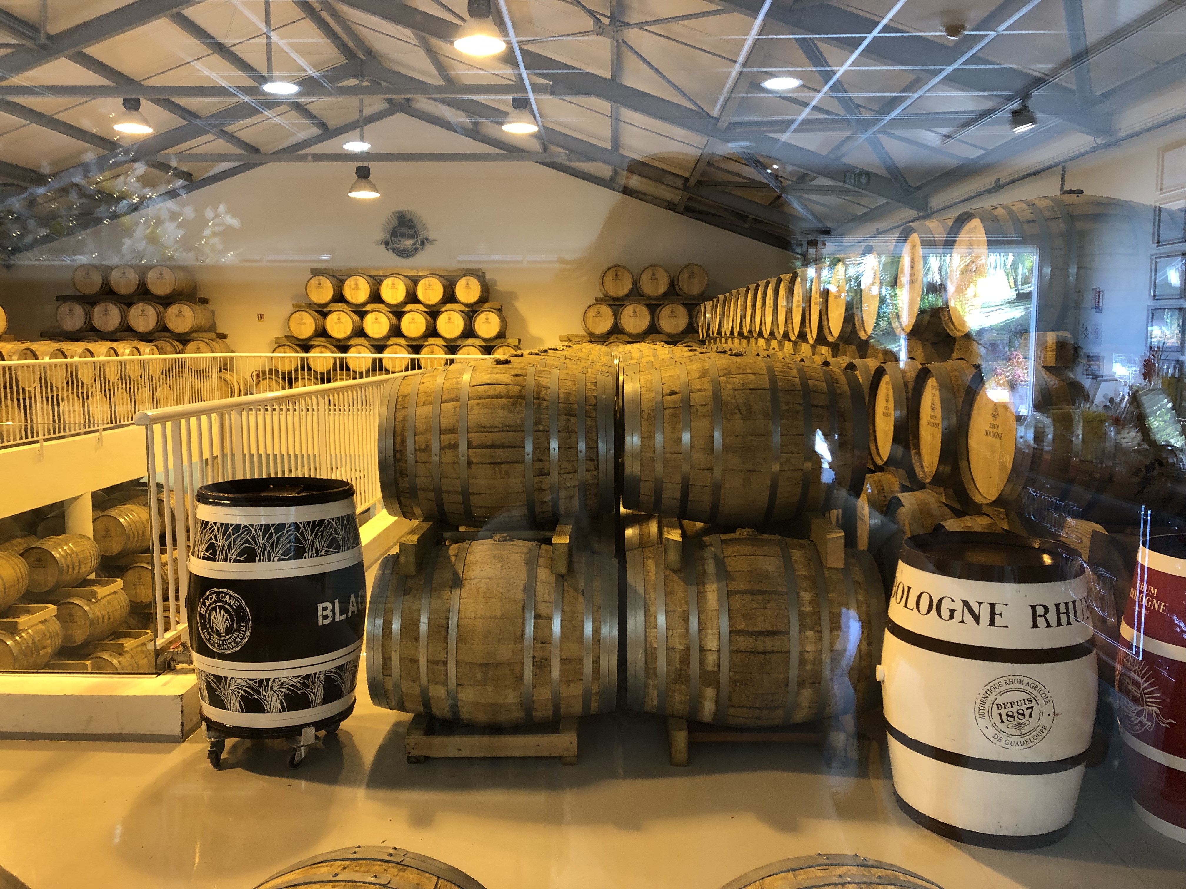 L’area di accesso alla boutique è meravigliosamente circondata da un giardino tropicale dove scorre un fiumiciattolo, e la boutique stessa è una cabane in stile creolo dai colori vivaci e caldi, che trasmette allegria al visitatore: all’interno il personale è impegnato all’accoglienza dei visitatori ed alla illustrazione dei prodotti sul grande banco d’assaggio che campeggia in fondo alla sala: a destra, una vetrata corre lungo il lato e ci offre la vista su un magnifico chais d’invecchiamento, in cui riposano botti di varie dimensioni.