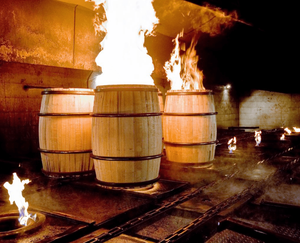 Questa divisione delle tecniche di tostatura sulla base del territorio è figlia della tipologia di spirito che veniva e viene prodotta (oggigiorno con le dovute aggiunte e precisazioni geografiche) nelle aree di pertinenza delle rispettive: se in Europa continentale (leggi soprattutto Francia), gli alcool prodotti provengono da materia prima viticola e, in caso di distillati, subiscono tipicamente una doppia distillazione, negli Stati Uniti D’America, primi utilizzatori di quel legno magnifico, resistente e duttile che è la quercia bianca, il charring è una parte essenziale (e obbligatoria) del processo di produzione degli spiriti, e specialmente del Whiskey, e Straight, del Bourbon e del Rye Whiskey, che devono maturare “in new charred oak barrels”: la carbonizzazione, che può raggiungere sino a 7 livelli di intensità, è infatti necessaria alla cosiddetta fase “sottrattiva” di una botte, quella in cui lo strato di carbone creato intrappola alcuni dei componenti tipici dello spirito, che, in uscita da un classico Thumper, “morde” eccome, tanto da essere chiamato “white dog”: questi componenti, che renderebbero la sua texture ruvida e spiacevole (fusel alcohols, frazioni 1 e frazioni 3), sono bonificati dal legno e dal charring, risultandone così lo spirito finale tipicamente “smooth and mellow”. Char e tostatura possono essere utilizzati in modo complementare o meno nei nuovi iter di maturazione in quercia americana.